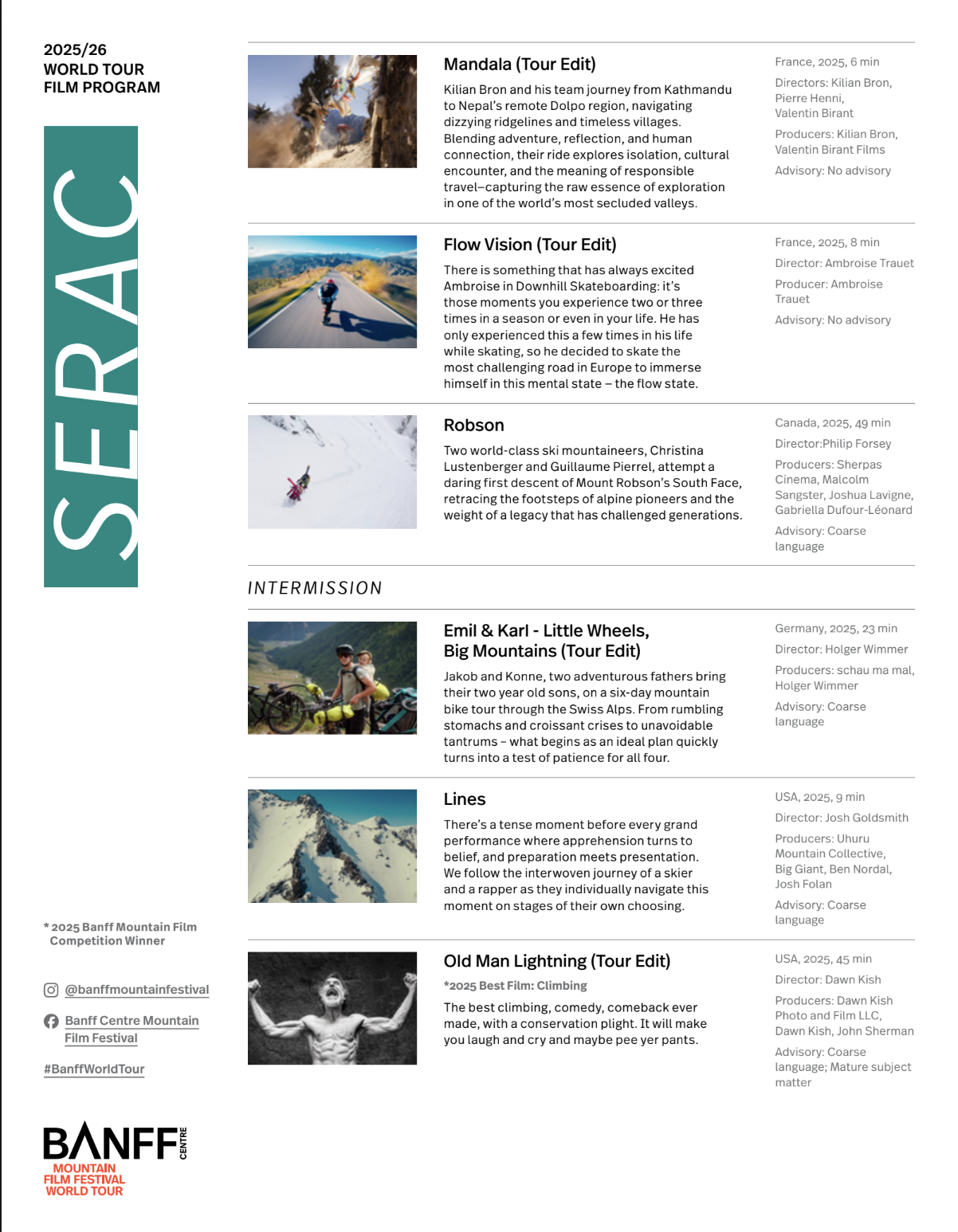 BANFF CENTRE MOUNTAIN FILM FESTIVAL WORLD TOUR