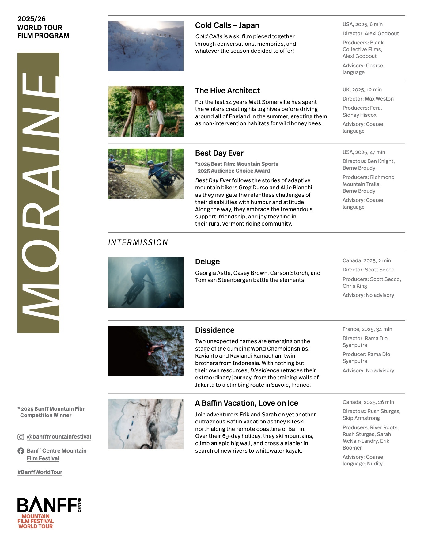 BANFF CENTRE MOUNTAIN FILM FESTIVAL WORLD TOUR